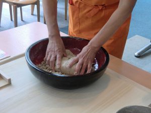 そばを混ぜて、こねて、延ばして、切って、最後は美味しく食べられます。