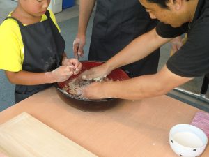 一里野ではそば打ち体験も今シーズンよりスタート!家族や仲間とわいわいそば打ち、自分で打ったそばは試食も出来ますよ。