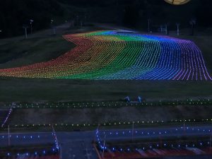 瀬女高原から車で約10分の一里野温泉には、一里野温泉スキー場ゲレンデメインにイルミネーションが設置。