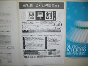 明日9月1日(金)からSAM白山シーズン券販売開始。