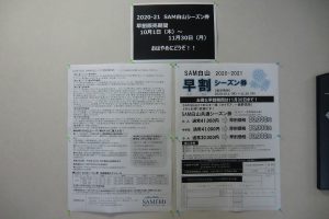 すべてのSAM白山シーズン券の受付、販売は一里野温泉スキー場管理事務所(センターハウスあいあ~る2階)にて開始となります。