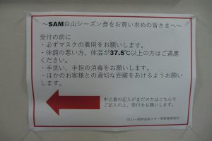 (獅子吼ゴンドラ駅舎のスペースも狭くゴンドラ乗車のお客様とシーズン券購入のお客様による密集回避などのため)
