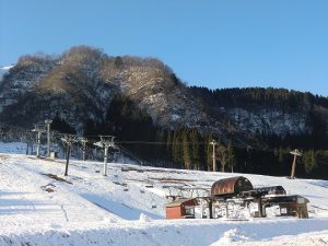 おはようございます。今朝は晴天の一里野です。気温は朝8:00頃で2℃ですが、夜は冷えているので何とかゲレンデの雪がまだ残っています。この雪のある間に新しい雪が欲しいですね。