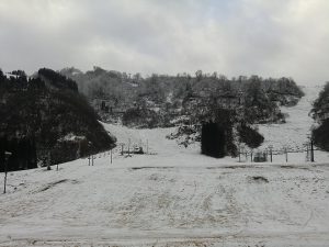おはようございます。今朝はひんやりした空気の一里野です。センターハウス前に残っている雪の上を歩くと冷えてバリバリになっていました。昨晩に期待した雪は、山麓部では残念ながら積もることがありませんでしたが、山頂部や周辺の山々を見ると標高の高いところは雪となったようで、木々が白くなっています。予報では、今晩から明日は降雪となっていますので、今度こそまとまった雪となって欲しいですね。スタッフはいつオープンしてもお客様に安心して、安全に楽しんでもらえる様に、安全点検などの準備をしていますのでゲレンデが整うまで、もうしばらくお待ちください!