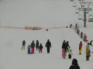 今日は、雪が降り続く天候ですが、ファミリーの皆さんもたくさん来場頂いてます。キッズパークも人気ですね。石川テレビさんのイベント『石川さんの日』も、ちびっこたちが雪に負けず楽しんでくれています。もちろんゲレンデも大変にぎわっていますよ。スノーボードデモによるテクニカルキャンプも開催されてかなり盛況だったようです。
