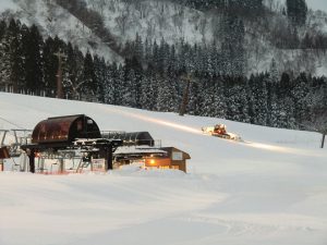 おはようございます。今朝6:00の時点で空は晴れて、山麓部では風はそれほどではないですね。予報を見ると天候がちょっと心配ですが、このまま天気が持ってほしいところです。昨晩からの圧雪隊の圧雪作業で、今日もバーンはきれいに仕上がっていますよ。スキー場までのアクセス道路は、新たな積雪も無くスムーズですが、一部雪が残っていたり、凍結している場合がありますので、必ずスタッドレスタイヤ装着、タイヤチェーンの用意をして、ゆっくり安全運転でご来場ください。