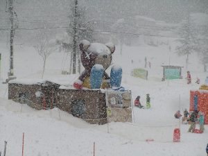 白山一里野温泉スキー場スタッフブログ ちびっこは雪の中でも元気です! 2017.01.22 朝の7:00を過ぎたころから小雪がチラチラ舞っていましたが、10:00前の時点で雪が少し強くなっています。ただ、まだ風もそれほど強くなく、ゴンドラも順調に運行中です。 キッズパークも営業を開始して、元気なちびっこをキッズパーク入口で『ボケぐま』くんがお出迎えしていますよ。 休日の一日を家族みんなで一里野で過ごしませんか?