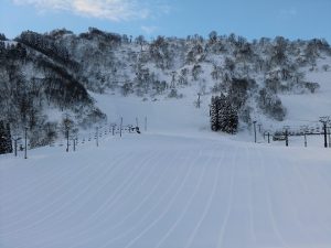 おはようございます。今朝は青空が広がる一里野の空です。朝イチの山頂からのスタッフの報告では、歩くとキュッキュッとなる締まった良い雪との事です!今日は天気も良いようですのでグッドコンディションのゲレンデを楽しめそうですよ!ぜひ一里野温泉スキー場を思い切り楽しんで下さい。