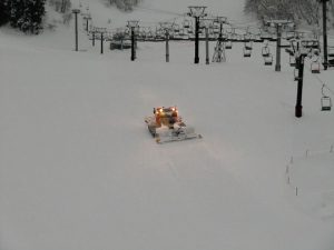 圧雪整備も作業中です。圧雪隊の話では、毎日、雪の状況は天候、気温などにより変化して、前日と同じ状況の日はまずないそうです。その日の状況で作業方法を変えながら、良い状態のゲレンデをお客様に提供できるよう努力しています。今日も営業開始まで、作業を頑張っていますよ!