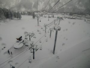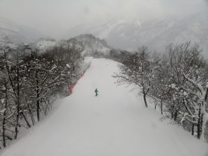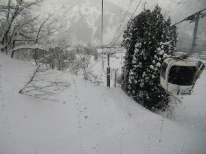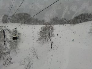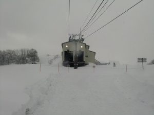白山一里野温泉スキー場スタッフブログ 今日の様子を少し画像で。 2017.02.13 今日は、かなり天気も落ち着いて、時折雲の合間から青空も顔を出す時間帯もあります。雪も止んで空が明るくなった午前中に、山麓エリアを歩いていると、まだ足元の雪がきゅっとなっていました。そのままゴンドラで山頂へ行くと雪が・・・。ウェアを着ずに事務所から出てきたため、寒さに耐えきれず山頂駅舎の従業員控室でストーブにあたってしまいました。画像は、山麓部からゴンドラ、山頂駅付近のものです。