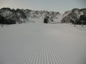 おはようございます。予報では晴れの一日となりそうですね。一里野の空には、朝7:00前ですが月がきれいに見えています。新しい降雪はありませんが、今日も圧雪隊がしっかり仕上げてますので、グッドコンディションを楽しんで頂けそうですよ。スキー場までのアクセス道路は、路面が出てスムーズです。ただ、路面の凍結をしている場合がありますので、運転には十分お気をつけてご来場ください。本日もスタッフ一同皆さまのご来場をお待ちしています。