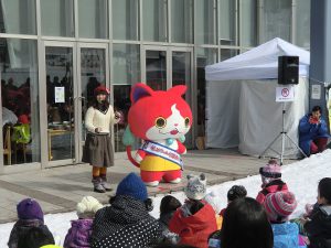 白山一里野温泉スキー場スタッフブログ 好天となっています。 2017.02.18 今日は、レストランゲレンデ前テラスで「妖怪ウォッチ ジバニャン バラエティショー」が開催されています。たくさんのファミリーの皆さんがショーを楽しんでいます。 天候も青空の見える、気持ち良い好天となっています。ゲレンデも良い感じに緩んできたようです。今日はナイター営業もあるので、ゆっくり準備してきても大丈夫!4時間券、回数券でのナイター突入OKですよ。
