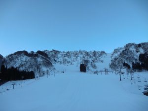 おはようございます。今日も晴天のグッドコンディションとなりそうな一里野の朝です。朝の山麓で-4℃とぐっと冷え込んでいました。今日はエキサイトコースも圧雪されています。朝の早い時間帯はバーンが、かなり固くなっていますのでバーンが緩んでくる10:00頃から楽しめそうですね。エキサイトコースは上級コースとなります。初級、中級の方の滑走はご遠慮ください。