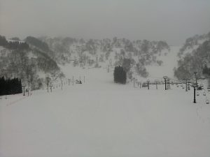 おはようございます。今朝はしっかり積もるような雪ではありませんが小雪が舞っています。山麓部では、圧雪したゲレンデの上をうっすら白くする感じ。予報では雪の降る一日となり、風も少し出てきそうですね。