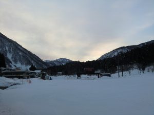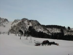 スキー場までのアクセス道路は、路面に積雪も無く乾いていますのでスムーズですが、日影などで路面が凍結している場合がありますので、運転には十分お気を付け下さい。
