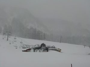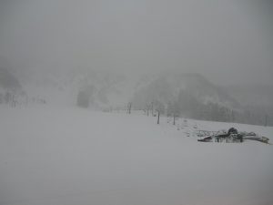 おはようございます。今朝の一里野は雪となっています。朝の出勤で道路を走ってくると、さすが一里野!雪の量が違います。前日から約15cmほどの積雪、これでシーズン終了までなんとか雪も持ってくれそうですね。