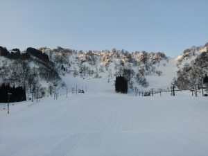 白山一里野温泉スキー場スタッフブログ 今シーズン最後の土曜日は晴れ! 2017.03.25 おはようございます。今シーズン最後の週末は、青空の広がる絶好のスキー・スノーボード日和となりそうです。 今朝6:00時点の気温は山麓で-3℃と、放射冷却でかなり冷えていました。センターハウス前の圧雪したところを歩くとしまってきゅっと音がなりましたよ。3月のこの時期としては、良いコンディションで滑走を楽しめそうです。 スキー場までのアクセス道路は、路面に雪も無くスムーズに走ってくることが出来ます。ただ、朝は気温が低くなっていましたので、凍結などしている場合があります。運転はゆっくり安全運転でご来場ください。 本日は9:00~15:30までの営業です。皆さまのご来場をスタッフ一同心よりお待ちしています。 天候:晴 気温:-3℃ 風:微風 運行:ゴンドラ・あいあ~る第1リフト・あいあ~る第2リフト・のだいら第2リフト・全面滑走可能(中の原A・Bコースは中の原リフト休止の為クローズします) 料金:特別価格 リフト1日券大人3,000円 小人1,500円 ※キッズパークは今シーズンの営業を終了しました。ソリ遊び、雪遊びは、スキー場隣接の一里野公園エリアをご利用ください。