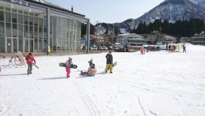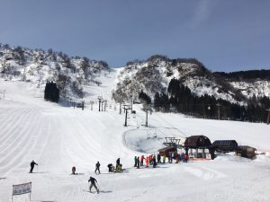 晴天となった営業最終日。ゲレンデは賑わっています。