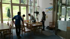 白山一里野温泉スキー場スタッフブログ 白山開山記念『1300gサンドイッチ』取材中! 2017.05.16 今日は、北陸朝日放送さんが白山開山1300年記念の『1300年サンドイッチ』の取材に来てくれています。 レストランスタッフが、サンドイッチを作成しているところも撮影しています。 やっぱり大きさ、重さにビックリ!してくれました。 放送は今週金曜日の夕方のニュースの最後、18:50ごろとのことです。どんな感じになったか、ぜひご覧ください。