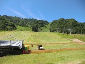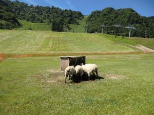 一里野のヒツジさんたちは、気持ち良い晴天の下で朝ごはんを食べていました。