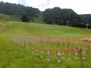 白山一里野温泉スキー場スタッフブログ ヒツジさんも、のんびりしていますね。 2017.07.27 今日の一里野は雲が多めの空となっていますが、そよ風が吹いていて気持ち良いですね。 一里野のヒツジさんはのんびり草をむしゃむしゃ食べていましたが、それでも、おやつが欲しくて、めぇー!めぇー!と呼んでいました。 白山開山1300年記念の『灯りでつなぐ1300年』のイルミネーションの取り付けが残っていた場所や、センターハウス前の用水まわりなどの安全確保の為のイルミネーションが、昨日も白山市職員の皆さんで遅くまで作業をされていました。 正式なオープニングは8月5日ですが、取り付けられたイルミネーションは、日没頃から4時間ほど点灯しています。 もう見ることは出来ますので、3万個のLEDの灯りがともる一里野温泉へ、夕涼みがてらお出かけしてみませんか?