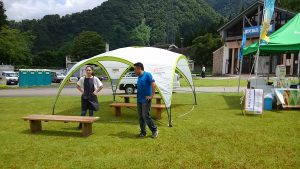 白山一里野温泉スキー場スタッフブログ 音楽祭は13:00開場ですよ! 2017.08.05 本日15:30から「白山一里野音楽祭」が開催されます。 13:00から開場となりますが、グルメコーナーの各お店の準備は、ほぼできていました。 SAM白山も今回は、ソフトアイスとフランクフルトを販売! 小さいですが休憩スペースも設置しました。 皆さん、これから準備して一里温泉へGO!