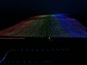 ゲレンデ上部がガスにかかってイルミネーションも上部のほうがきれいに見えませんね。