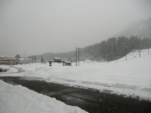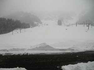白山一里野温泉スキー場スタッフブログ 一里野は雪ですね。 2017.12.08 おはようございます。 今朝の出勤途中は雨だったので嫌な感じがしたのですが、一里野までくると雪に変わりました。 予報では山の方はしばらく雪が降りやすい天気になりそうです。 昨日はスタッフがセンターハウス前用のスキーラックを用意してくれ、着々と準備は進んでいます。 こんな天気が続くようなら23日のOPENに間に合いそうですね(まだ疑心暗鬼(●^o^●)、2シーズンのトラウマが・・・) 皆さんも、期待してもうしばらくお待ちください!
