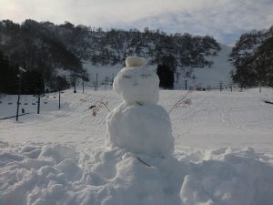 正面ゲレンデ付近を歩くと、いつのまにか「雪だるま」が!