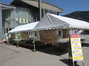 一里野のバーベキュー広場は、テントの下なので急な雨でも大丈夫ですよ。