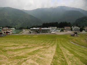 白山一里野温泉スキー場スタッフブログ 梅雨入り前の土曜日。 2018.06.09 今日は空には雲が広がっていますが、日中は雨の心配はないようですね。 一里野はそよ風が流れていますが、空気がムシッとして梅雨入り間近を感じます。 センターハウス正面のゲレンデでは、先日より業者さんが入って、7月7日からの一里野イルミネーションの設置準備をしています。 ゲレンデの斜面も作業にあわせてスキー場スタッフが草刈りをしてくれました。 今年は、杭打ちとチェーン設置までは業者さんがしてくれるので、6月30日(土)のボランティアの作業はLEDのペットボタル取り付けになります。 興味のある方はぜひ、ボランティアにもご参加ください。 詳しくはこちら 灯りでつなぐ1300年HP http://hakusan1300.info/archives/event/51 一里野公園も草刈がされてスッキリしています。 白山癒しの湯天領前の芝生広場ではグラウンドゴルフも楽しめますよ。 道具のレンタルは1セット200円で天領フロントで受け付けていますので、お気軽にご利用ください。 本日は、レストランあいあ~るも営業中!ドライブのランチや休憩にご利用ください。 テニスコート、RCプラザもご利用いただけますよ。 遊んだあとは、天領の温泉につかって汗を流して下さい。 皆さんのご来場をお待ちしています。