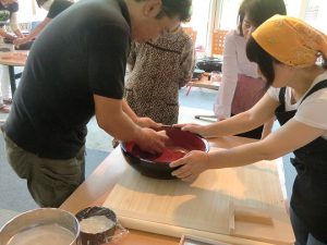 白山一里野温泉スキー場スタッフブログ そば打ち体験リハーサルしました。 2018.06.28 今日は、そば打ち体験のリハーサルを行い、一里野温泉観光協会おかみの会の皆さんにも声をかけて参加して頂きました。 2回に分けて前半はおかみの会の皆さん、2回目はスキー場スタッフが体験してみましたよ。 おかみの会の皆さん、忙しいなか、ありがとうございました<(_ _)> そば粉は、地元白山ろくの鳥越産そば粉を使用しています。 実際に自分でやってみると、こねたり、切ったりと思うようにいかず、なかなか大変!でもほんとに楽しいですね! そば打ちの後は、自分たちで打ったそばをゆでてもらい、ざるそばにして美味しくいただきました(●^o^●) 自分たちで打ったそばは、いつもより美味しく感じますね! そば打ち体験は、7月20日スタートになります。 家族や友だちと美味しい“そば打ち体験”してみませんか? ご予約、お問い合わせは、一里野温泉スキー場管理事務所 電話076-256-7412まで。