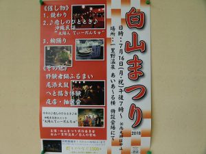 今日の午前中に地元、一里野温泉観光協会の皆さんが、7月16日(月・祝)に開催される「白山まつり」の準備作業を行いました。
