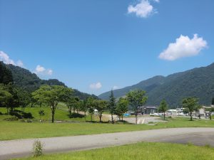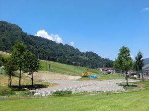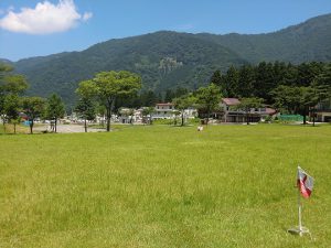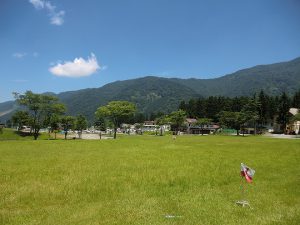天領の正面には一里野公園の芝生が広がって、グラウンドゴルフも楽しめます。
