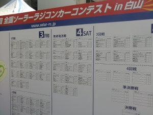 白山一里野温泉スキー場スタッフブログ 全国ソーラーラジコンカーコンテストin白山は、今日が最終日 2018.08.04 昨日から開催されている「全国ソーラーラジコンコンテストin白山」は、今日が最終日、決勝まで行われます。 会場のRCプラザをのぞいた時は、ちょうど一般のオープンクラスの公式練習中でした。 高校時代に大会参加したOBの方がオープンクラスにも出場をされている場合があるようですね。 このあとの決勝まで、高校生たちの熱いレースを観戦にお越しください! 地元一里野温泉観光協会さんが冷たいドリンクやかき氷、フランクフルトなどの販売もしていますよ!