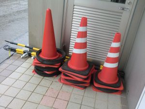 スタッフが台風の準備で建物周りの安全コーンなど片づけてくれていました。
