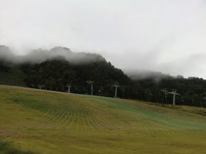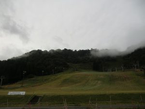 今朝の一里野は、嵐の前の静けさ?でしょうか、雨もあがっていて曇り空です。