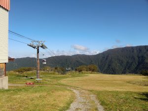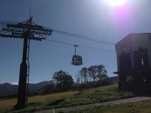 白山一里野温泉スキー場スタッフブログ 快晴の一里野です。山頂のパノラマもGood! 2018.10.08 今日は快晴の一里野です! ゴンドラも快調に運行中。 周辺の山々も紅葉が始まっているようです。 青空と白山麓の山々のパノラマが最高ですよ。 一里野ゴンドラは10月の土、日の運行です。 ワンちゃんも一緒に空中散歩OKですよ 皆さんのご利用をお待ちしています。