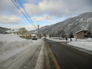 大駐車場前の道路は少し雪はありますが、路面が出ていて走りやすそうですよ。