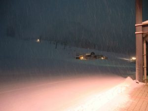スキー場までのアクセス道路は除雪が入っていますが、路面に雪がありますのでスピードに気を付けて安全運転でご来場ください。