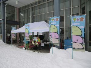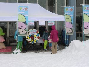 予定ではキッズエリアでフワフワも設置して抽選会などを行う予定でしたが、降雪が多く安全面を考慮しフワフワの設置は行っていません。