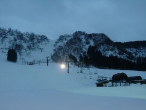今朝は曇り空となっている一里野です。予報では日中は曇りですが雪が降る時間帯もありそうですね。