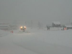 昨晩の強風、降雪の為、山頂付近の圧雪作業が遅れております。