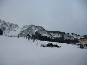 2月最後の日曜日、空は薄曇りとなっている一里野です。