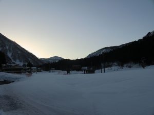 スキー場までのアクセス道路も、積雪無く乾いた路面が出て走りやすくなっています。スピードの出しすぎに気を付けてご来場ください。