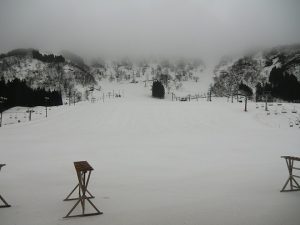 今朝は雨の一里野となっています。日中は気温が下がってくるようなので雪に変わるかも・・・。