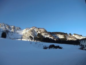 今朝も晴天の一里野です。日差しがゲレンデの山肌にあたってきれいですね。
