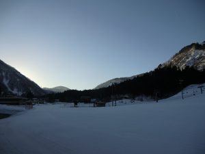 スキー場までのアクセス道路は、乾いた路面となっていますので、スムーズに走ることが出来ますが、放射冷却による路面の凍結がある場合がありますので、ゆっくり安全運転でご来場ください。