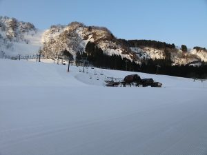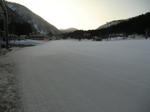 スキー場までのアクセス道路は、乾いた路面となっていますので日中はノーマルタイヤでも大丈夫です。ただし、日影など凍結している場合があるのでスピードに気を付けて安全運転でご来場ください。