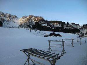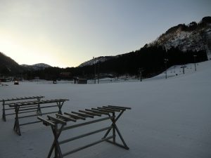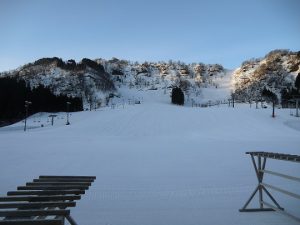 スキー場までのアクセス道路も、乾いた路面で日中はノーマルタイヤでも大丈夫です。ただし、朝は冷え込んで路面が凍結している場合がありますので、スピードに気を付けて安全運転でご来場ください。